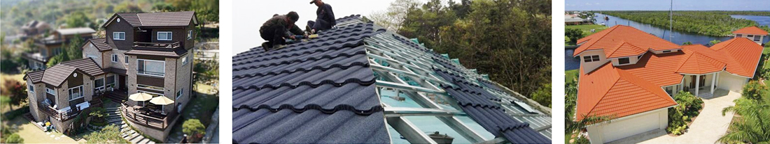 彩石金屬瓦適用于各類坡屋頂建筑的屋面鋪裝和各類建筑的局部裝飾,特別是適用于別墅、中高檔住宅、大型商場圖書館博物館和學校醫(yī)院政府機關(guān)和企事業(yè)單位辦公樓,也非常適用于平改坡和舊屋面翻新。